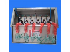 ZYJ-A型矿井压风自救装置,内装六个联成一组,装在不锈钢的箱体内,组成一个井下自救系统,并由地面泵房供气。(瓦斯突出矿井安装多少个组,视其井巷规模,井下工作人员编制的多少而定,一般情况下,井下安呼吸器的个数不得少于井下全员的三分之一)。